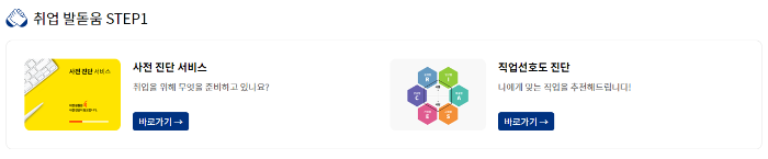 - 사전 진단 서비스, 직업 선호도 진단을 통해 나에게 맞는 직업을 추천받을 수 있습니다.