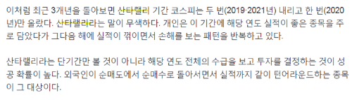 미국은 GDP에서 가계 소비가 큰 부분을 차지하기 때문에 산타랠 리가 의미가 있을 수 있으나 우리나라처럼 수출이 큰 부분을 차지하는 경우 산타랠리 효과가 적은 편이긴 합니다. 게다가 국제적인 분쟁, 장기적 경제 침체 등의 요인이 있다면 산타랠리 현상이 일어나지 않을 수도 있습니다.