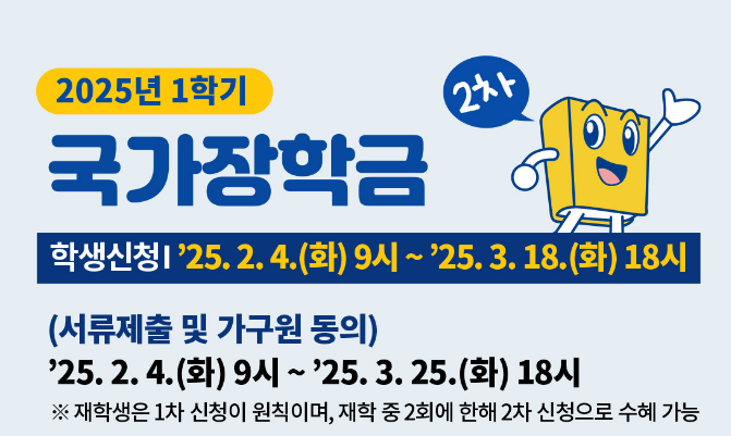 2025년 1학기 국가장학금 2차 신청이 진행 중이에요! 💰